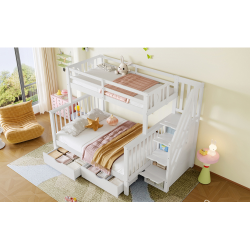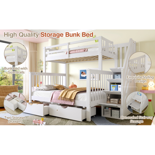 Product Name:Bunk Beds for Kids, Double High Sleeper Bed Frame with Storage and Guardrail, Space-Saving Design with Drawer Storage, Children Cabin Bed with Storage Stair for Bedroom, Dorm, White (No Mattress)